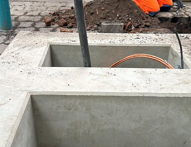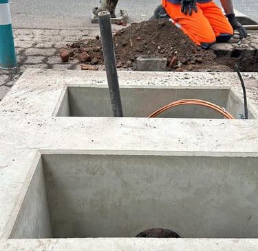 Wir liefern zukunftsfähige Netzwerke, indem wir Glasfasersysteme, Stromkabel und Ladestationen für Elektrofahrzeuge schnell, präzise und zuverlässig installieren.
